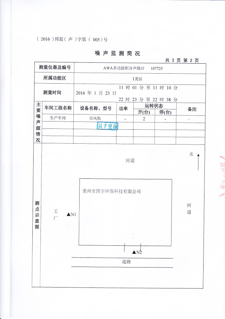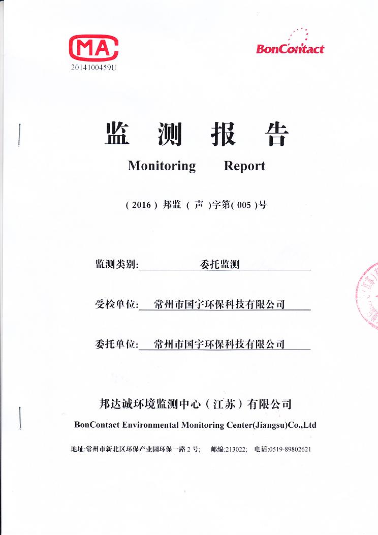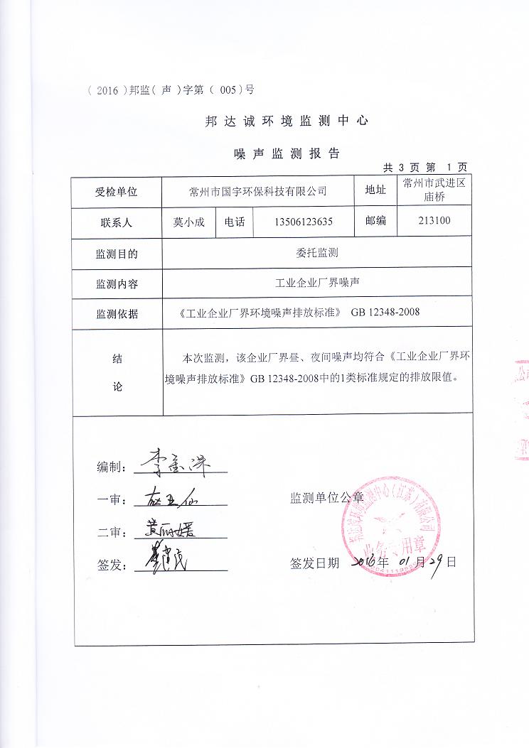 2016年常州市國宇環(huán)保科技有限公司聲監(jiān)測報告網(wǎng)上公示