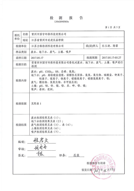 2017年廢水、地下水、廢氣、土壤、噪聲的檢測