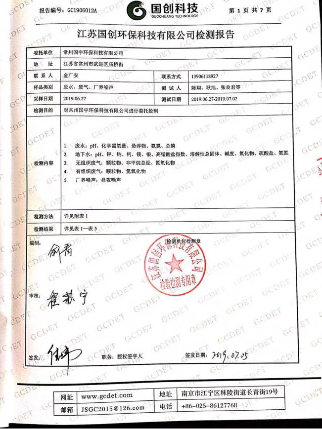 2019年上半年廢水、廢氣、噪聲檢測(cè)報(bào)告