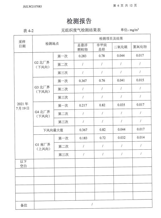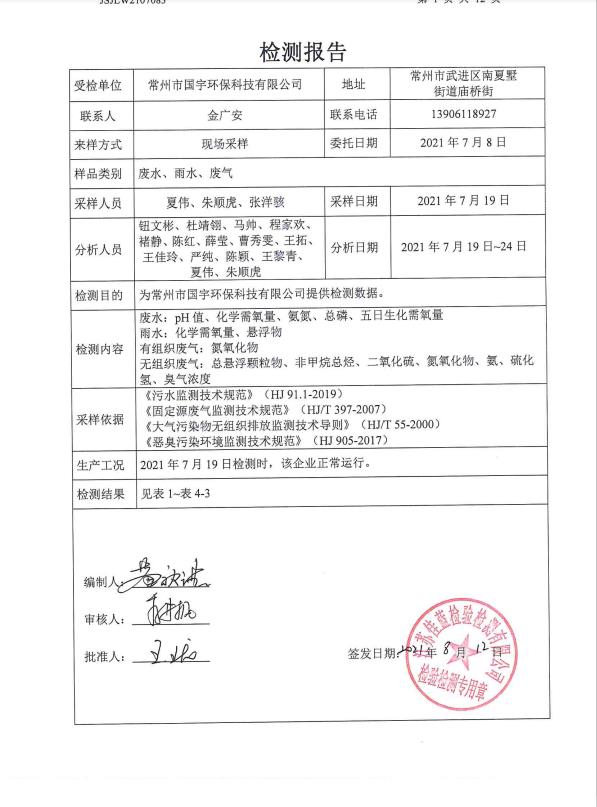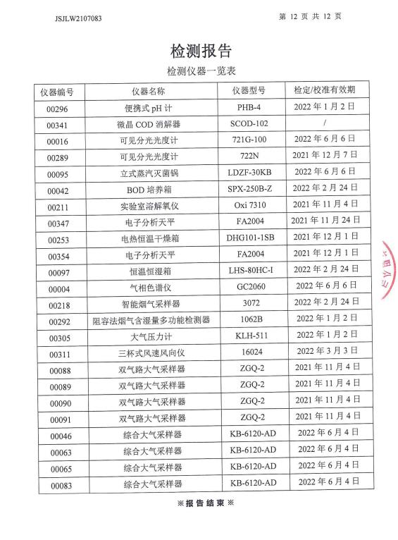 2021年下半年檢測報(bào)告--廢水、雨水、廢氣